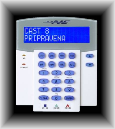 Klávesnica K641R vznikla doplnením bezkontaktnej čítačky do známej klávesnice K641. Slúži na výstavbu cenovo dostupných prístupových systémov založených na ústredniach DIGIPLEX. Pripája sa priamo na zbernicu ústredne a plní všetky potrebné prístupové úlohy. Kliknutím na modrú kartičku je možné spustiť ukážku práce prístupového systému s klávesnicou K641R