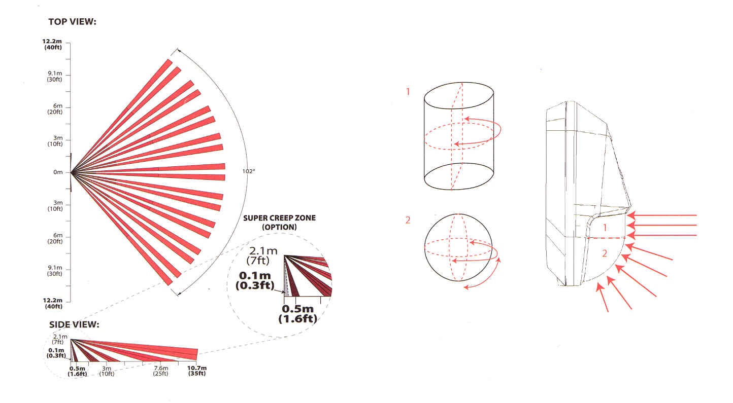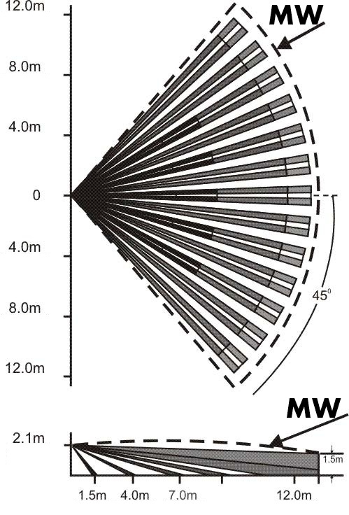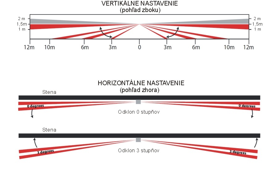 NV780MX a NV780MR sú vonkajšie snímače určené na plášťovú ochranu. Majú úzku charakteristiku smerujúcu na dve strany. Obe strany je možné podľa potreby nezávisle nastaviť vertikálne aj horizonzálne. |